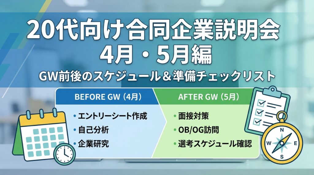 時期の不安が強い方は、GW明けの転職は遅くない|5月スタートが有利な理由と準備リストもあわせて確認しておくと、イベント参加後の全体スケジュールを組み立てやすくなります。